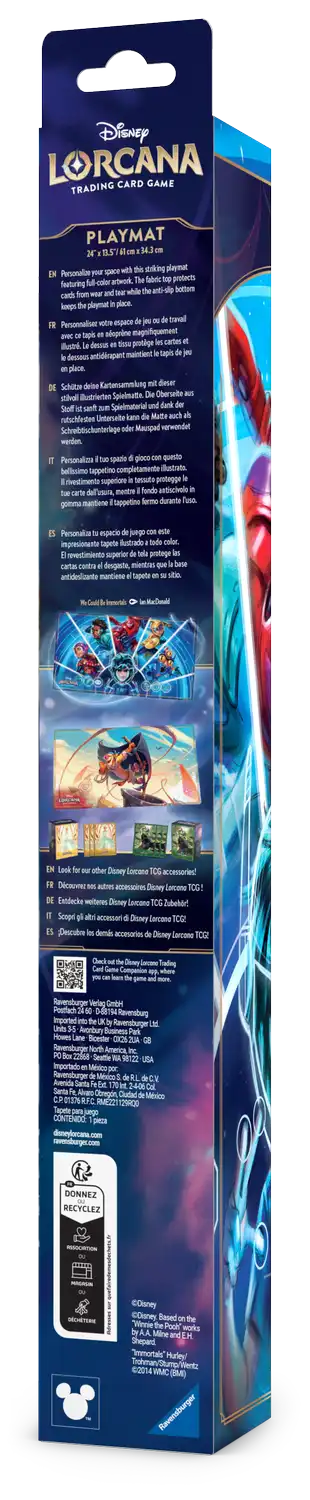 Denne imponerende spillmatten fra Disney Lorcana: Archazia’s Island har det fantastiske kunstverket “We Could Be Immortals” med glimmers fra Big Hero 6. Gi spillområdet ditt et personlig preg og sørg for at kortene dine er godt beskyttet under hvert spill.