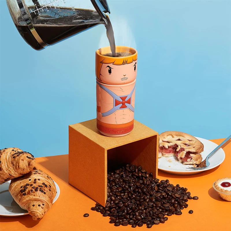 Reusable cosplaying cup featuring He-Man from Masters of the Universe. Ensures your beverage stays at the right temperature. Made from high quality ceramic with moulded silicone grip