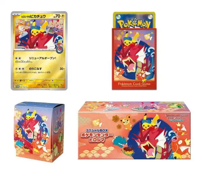Pokemon Center Hiroshima Special Box (Japansk) er en eksklusiv Pokemon Center-utgivelse fra Japan, laget for samlere som vil ha noe som skiller seg ut i hylla. Høydepunktet er et holo promokort med Hiroshima’s Pikachu, kombinert med matchende tilbehør som gjør dette til en komplett og gjennomført samleboks.
