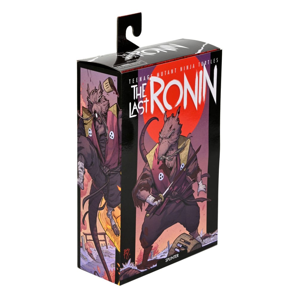From the Teenage Mutant Ninja Turtles comic book series, The Last Ronin! In a future NYC far different than the one we know today; a lone surviving Turtle goes on a seemingly hopeless mission to obtain justice for his fallen family and friends. Based on issue #4 of the comic, the Splinter figure figure stands in 7″ scale with over 20 points of articulation, and includes staff, katana and sheath, interchangeable hands, and interchangeable forearms so Splinter can be displayed with clean or ripped sleeves. Comes in collector-friendly window box packaging with opening flap featuring a custom illustration by The Last Ronin artist Ben Bishop.