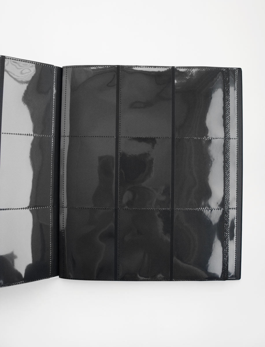 - The Pokéball PRO-Binder features a “full-view” wrap-around spine. Each binder holds 360 sleeved cards and is constructed from archival-safe polypropylene materials. The black backing of the pages are textured for low friction and easier card insertion and removal, while an elastic strap holds the binder securely shut. Each binder is packaged in a peggable full-color polybag.
